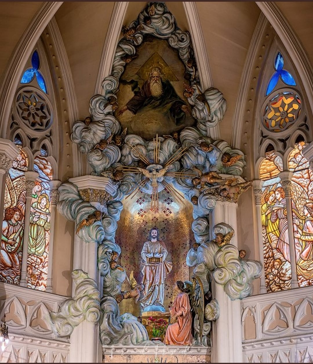 Con una fachada discreta que no revela su belleza interior, al cruzar su umbral nos adentramos en un espacio sorprendente. La decoración del presbiterio, conocida como «Cachito de cielo» por los lugareños, es un despliegue escenográfico de estilo naif. Un cielo de yeso en tonos azules y blancos, adornado con angelotes, rodea la figura de Jesús, creando una atmósfera celestial única.