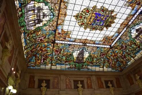Además, la Casa de la Villa alberga el Salón Goya, con su techo original del siglo XVII y una réplica del famoso cuadro de Goya, «Alegoría de la Villa de Madrid». Otros espacios destacados incluyen el Patio de Cristales, con coloristas vidrieras del siglo XIX, y la Saleta de la Paloma, que alberga obras de arte religioso de gran valor histórico.