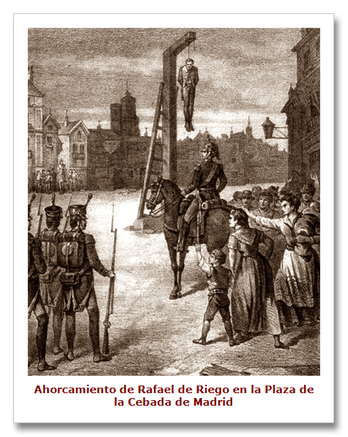 El General Riego encabezó el pronunciamiento contra el absolutismo en Cabezas de San Juan el 1 de enero de 1820, lo que supuso el comienzo del Trienio Liberal, con una vida corta, de tan solo tres años, acabando también con la vida del general, pues sería ejecutado públicamente.
