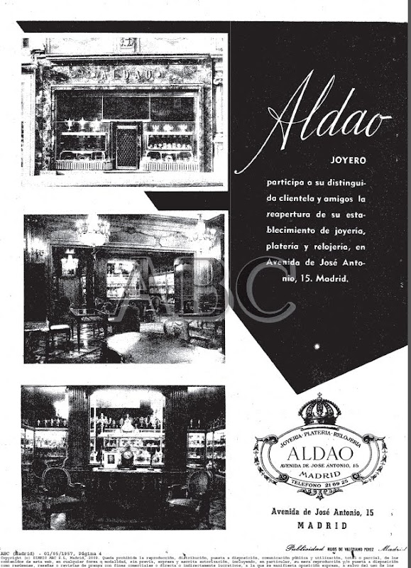 Pero vamos a hacer un viaje en el tiempo. Manuel Fernández Aldao Balbis, aprendió el oficio con 11 años de su padre, joyero en La Coruña. Al quedar huérfano siguió con el negocio, decide entonces embarcarse en un viaje a Venezuela, y se especializa en esmeraldas. Cuando vuelve a España en 1911, monta una pequeña joyería en esta calle de la Sal, nº 2 al 8. La calle que salía de la Plaza Mayor, había sido mercado de la sal en el siglo XVII y desde finales del XIX principios del XX contaba con negocios tan emblemáticos como la Antigua Relojería, con su autómata inspirado en el dibujante Antonio Mingote y El Gato Negro, la tienda de las lanas de Madrid desde 1915.