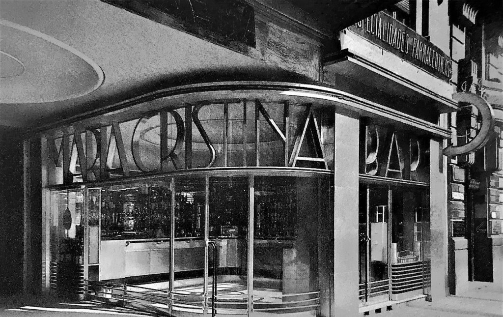 El bar María Cristina, con su estilo racionalista y su fachada adornada con una «farola-flecha», fue inaugurado en 1933 pero pronto sufrió una huelga de camareros y los estragos de la guerra, terminando completamente destruido en 1937.