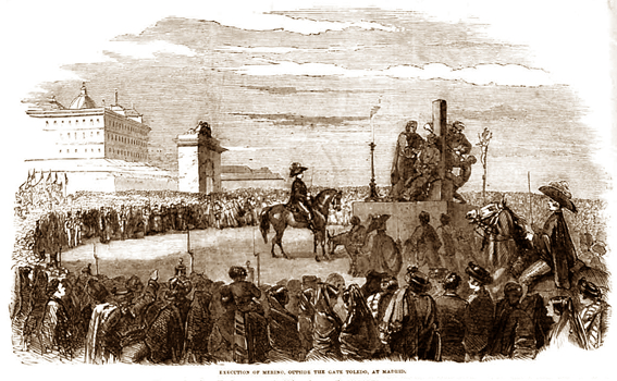 En esta imagen, revivimos el efímero monumento erigido en la Puerta del Sol el 18 de febrero de 1852 para conmemorar el regreso de Isabel II. Este monumento, que costó 78.000 reales a los madrileños, solo estuvo en exhibición durante 10 días. En segundo plano, se distingue la iglesia del Buen Suceso, con el reloj que luego se trasladaría al edificio de Gobernación. La fotografía es de Clifford, de la Biblioteca del Palacio Real.