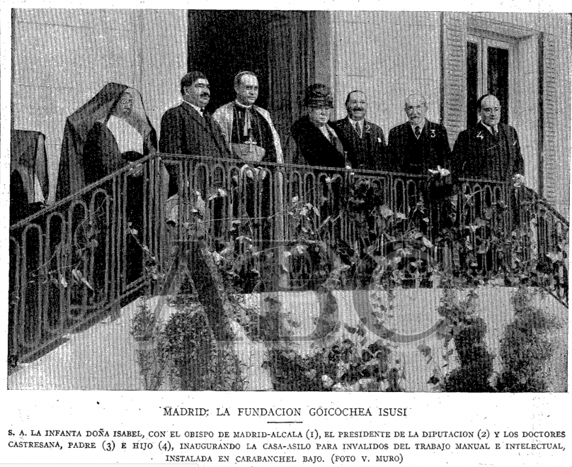 Ramona de Goicoechea e Isusi, una rica burguesa vinculada a la aristocrática casa de Llanero por su matrimonio con Baldomero Murga, gestionó con éxito la fortuna familiar, ampliándola y practicando activamente la filantropía. Tras su muerte en 1922, legó parte de su capital a obras de beneficencia, incluyendo la Fundación Casa-Asilo Goicoechea e Isusi. El edificio se completó en julio de 1926 y fue reinaugurado como Asilo para los Inválidos del Trabajo Manual e Intelectual por Isabel de Borbón. Fue uno de los primeros asilos para mujeres inválidas del trabajo, y en su inauguración participaron el obispo de Madrid-Alcalá y el presidente de la Diputación madrileña, entre otras autoridades. La fundación, rebautizada como Castresana, sigue desempeñando una encomiable labor en beneficio de la ciudadanía.