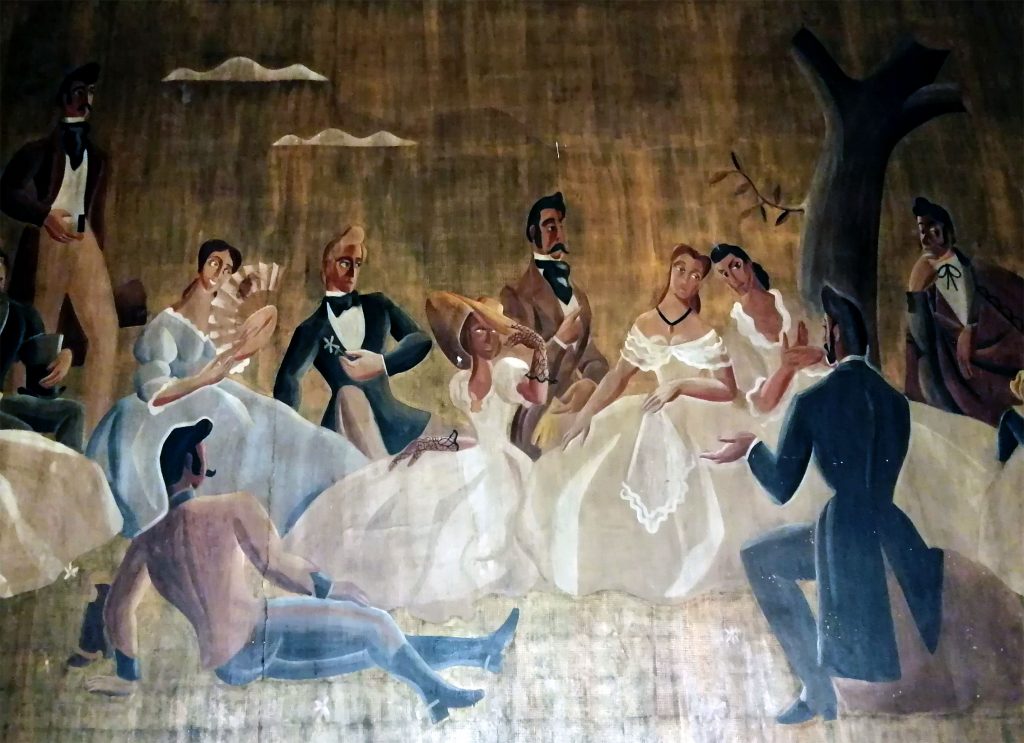 Uno de los elementos más llamativos es la decoración del vestíbulo principal, donde se encuentra un mural titulado «Reunión de románticos» del pintor Ponce de León, miembro de la Generación del 27. Trágicamente, Ponce de León fue asesinado al inicio de la Guerra Civil, acusado de falangista, con tan solo 27 años. Otro de sus murales, «El descanso», decoraba el anfiteatro y fue restaurado por el Museo Reina Sofía para una exposición que buscaba recuperar su legado. Tras la muestra, quedó permanentemente en el museo.