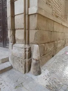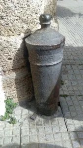 Según la RAE, un guardacantón es un poste de piedra usado para proteger las esquinas de los edificios de los daños ocasionados por el paso de vehículos. También se colocaban en los laterales de las puertas para evitar golpes con los ejes de los carros. Eran una solución ingeniosa y sencilla para preservar las construcciones de la época.