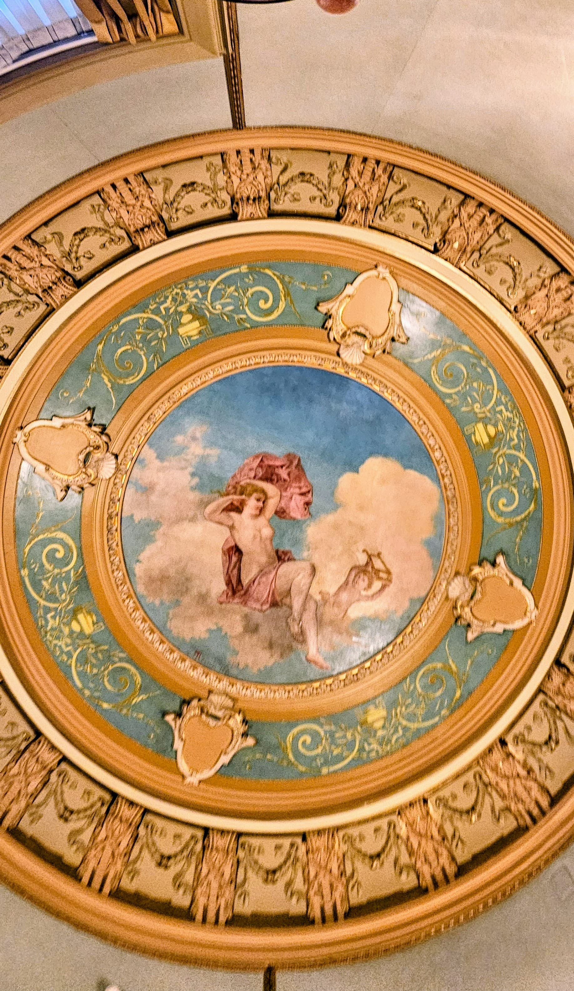 Aunque gran parte de las pinturas murales originales de Mélida fueron cubiertas, algunas salas como el Salón de los Continentes y el Salón de las Abejas conservaron su esplendor. En la nueva parte, destacan las pinturas de Manuel de Azpiroz.