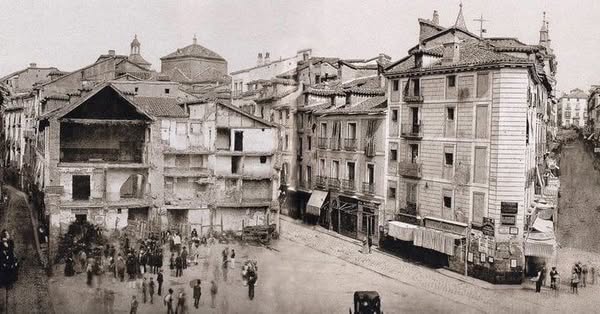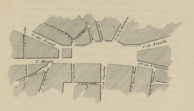 El 17 de marzo de 1854 ya se había deshecho el asfalto frente a la Iglesia del Buen Suceso, dejando solo una capa de tierra que serviría de base al pavimento que se convertiría en un inmenso lodazal. Se derribó la iglesia, la Inclusa, entre la calle de Preciados y del Carmen.
