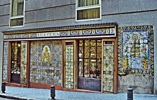 Trabajan con tres provincias principalmente, Toledo,( Talavera, Puente del Arzobispo), Valencia y Castellón ( Manises, Alcora) y Granada. Poseen piezas antiguas de grandes maestros como Emilio Niveiro, Juan Ruiz de Luna, que abarcan iconografía desde el siglo XIII al XIX, con alguna que otra pieza más moderna del siglo XX. En el techo, una lámpara de aceite antigua, reciclada a luz eléctrica ilumina unos carteles publicitarios de la Exposición Universal de Barcelona, 1929, auténticas joyas.