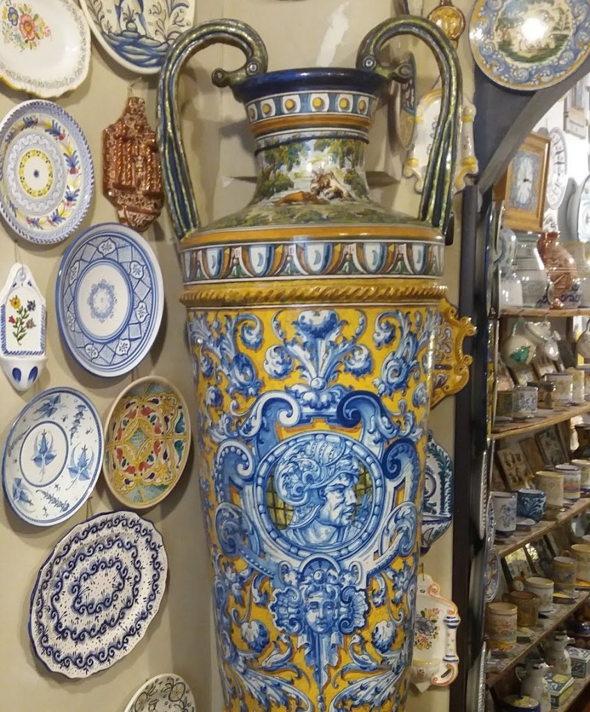 Obras de gran calidad y de diferentes procedencias, trabajados en pequeños talleres de Talavera de la Reina, Toledo, Puente del Arzobispo, Alcora en Castellón, Manises en Valencia, Sevilla, Onda, Ribesalbes, Granada, los mismos proveedores de siempre, que siguen trabajando con tornos de rueda, con hornos de leña, con baños de vidriado de estaño y de plomo, con pigmentos naturales. Cuencos, tazas, jarras, vasos, fuentes, azulejos, cada pieza original ,reproduciendo formas y dibujos antiguos.