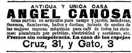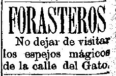 Estos espejos eran utilizados como reclamo comercial por la Carpintería de Juan Rodríguez, que se instaló en el lugar en la década de 1840. En 1850, el negocio pasó a manos de José Canosa, un vidriero especializado en lámparas fúnebres para nichos y panteones. La tienda, situada en el número 3 del Callejón del Gato, permaneció activa hasta bien entrados los años 30 del siglo XX.