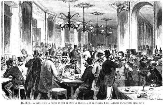 En los años 1870, su tertulia acogía a artistas como Casado del Alisal o Antonio Gisbert, y a políticos como Nicolás Salmerón o Laureano Figuerola. Incluso el Nobel Santiago Ramón y Cajal tuvo tertulia propia allí, y lo recordaría en sus Recuerdos de mi vida (1901).