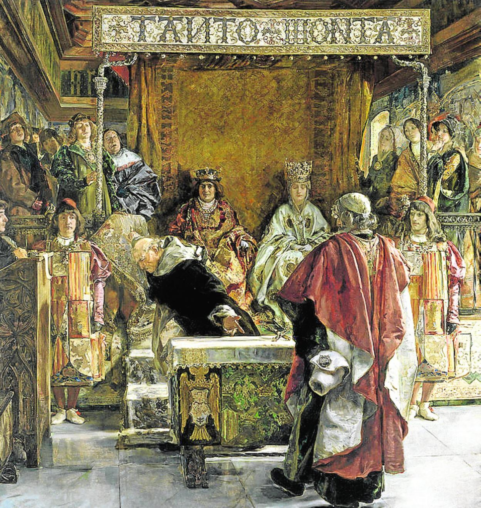 Durante siglos, especialmente en el norte de España, era habitual colgar en algunas iglesias grandes lienzos (las “mantas”) donde se escribían los nombres y apellidos de los judíos conversos. En teoría, esos nombres eran una prueba pública de conversión voluntaria al cristianismo… aunque en la práctica servían para identificar, vigilar y delatar.