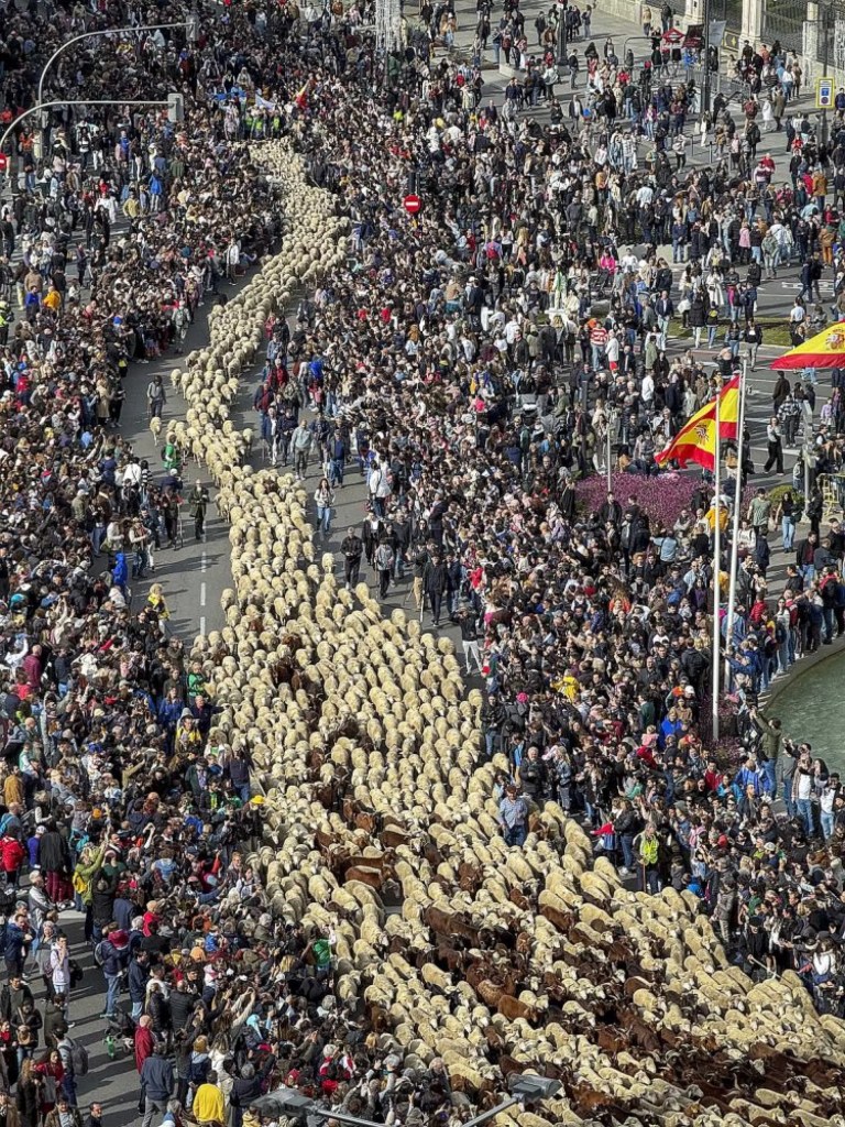 España, de norte a sur, está atravesada por rutas milenarias —las cañadas reales— por las que aún hoy transitan los rebaños trashumantes. Esta práctica, profundamente arraigada, llegó a estar regulada en la Edad Media: Madrid cobraba un peaje de 50 maravedís por cada millar de ovejas que cruzaban la ciudad.