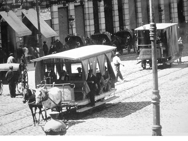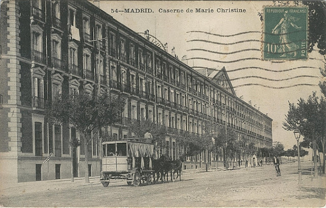 En 1871 se inauguró la primera línea de tranvía de Madrid, uniendo el barrio de Salamanca con Sol y Pozas. Al principio no afectó demasiado a los ómnibus, ya que estos eran más baratos. Sin embargo, el servicio del barrio de Salamanca terminó desapareciendo, y se subastaron públicamente 40 caballos y mulas, junto con carruajes y guarniciones.