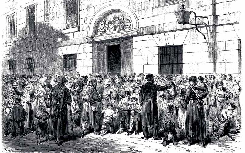 Madrid, como Villa y Corte, concentraba el poder político, la aristocracia y una burguesía en expansión. A esto se sumó una intensa inmigración rural, consecuencia directa de la pobreza generada por las desamortizaciones y reformas liberales. El resultado fue una ciudad desbordada por los problemas sociales: epidemias de cólera, barrios insalubres, pésimas condiciones laborales, prostitución, mendicidad y abandono infantil.