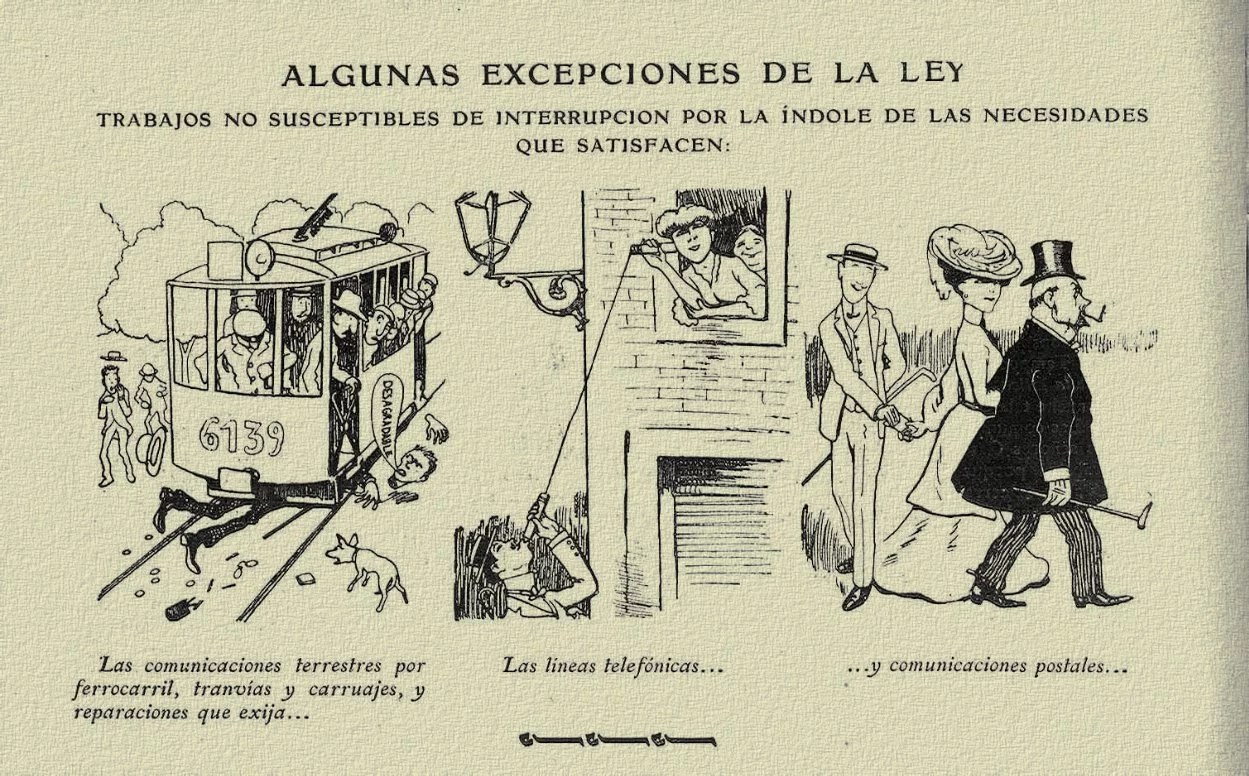 Aunque la industrialización española fue más tardía que la de otras potencias europeas, esta ley tuvo un carácter relativamente pionero. Prohibió de forma general el trabajo dominical para los asalariados —algo que ya se había restringido previamente en el caso de mujeres y menores— e introdujo un sistema de compensaciones para quienes, por razón de servicio público, debían trabajar en domingo. En esos casos, se garantizaba la recuperación del descanso durante la semana y se procuraba que los obreros pudieran cumplir con sus prácticas religiosas.