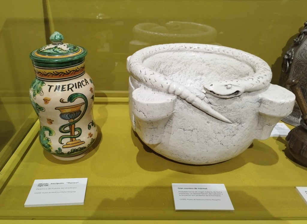 Sala 2: se centra en los métodos históricos de curación, como la piedra bezoar y el mitridato, hasta llegar a la triaca de Andrómaco y Galeno. También presenta el debate científico en torno a este remedio entre Charas y Redi.