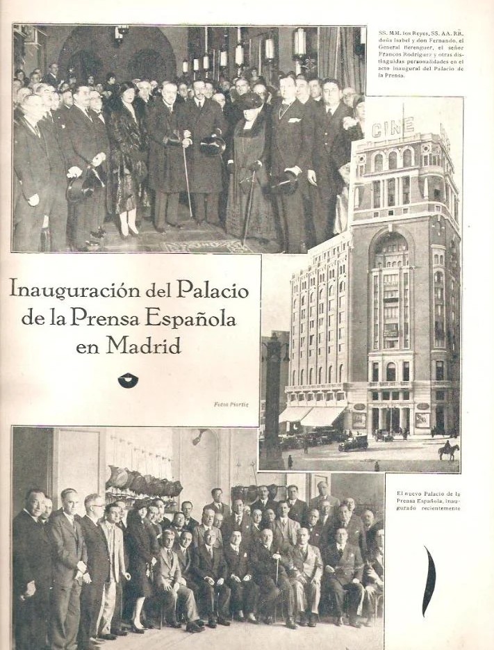 Pero retrocedamos unos años, antes de la destrucción, cuando la ciudad aún miraba al futuro con ambición. El 7 de abril de 1930, el rey Alfonso XIII, acompañado por el general Dámaso Berenguer, inauguraba uno de los edificios más modernos y simbólicos del momento: el Palacio de la Prensa.